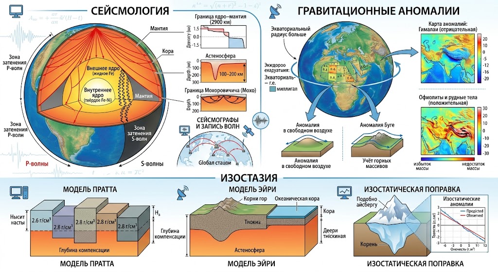 Геофизика Земли: методы сейсмологии, гравитационные аномалии и изостазия