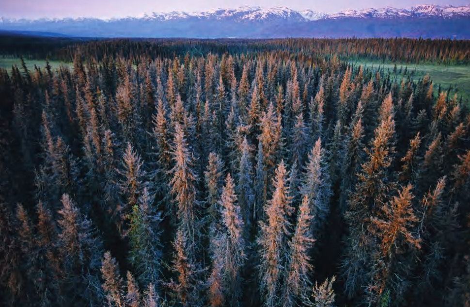 Ель, уничтоженная еловым короедом близ Гомера, Аляска