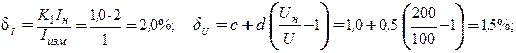 если Uн = 200 B, KV = 1,0/0,5, RV = 10 кОм;