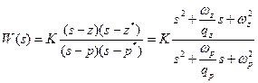 Пара комплексно сопряженных полюсов и нулей определяет передаточную функцию второго порядка