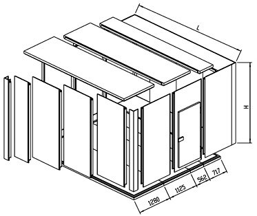 Сборные холодильные камеры применяют для хранения охлажденных (замороженных) продуктов. Представляют собой сборную конструкцию из теплоизоляционных панелей. Панель состоит из внешнего и внутреннего оцинкованного металлического листа и теплоизоляционного материала между ними. Дверь может оснащаться подогревом для предотвращения ее примерзания.