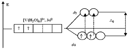Розчин солі ванадію [V(H2O)6]Cl3 має зелений колір. Це також обумовлено відповідними переходами електронів при поглинанні ними частини енергії світлового променя. У основному стані, при електронній конфігурації ванадію(III) 3d2, два неспарені електрони займають de-підрівень: