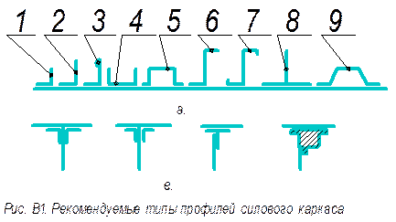 Для стрингеров обычно используются следующие профили (рис. В.1а):