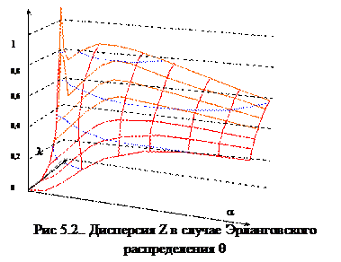 Большие значения дисперсии величины затрат Z указывают на большой риск в использовании рассматриваемой схемы (3) в дальнейших исследованиях. Заметим, что если h-2/a<0, дисперсия не определяется в виду расходимости соответствующего интеграла! Исследование поверхности указывают на возможность такого сочетания a и l, при которых использование (3) приводит к неадекватности модели. При очень малых a схема становится неадекватной при увеличении интенсивности окончания работ. Но очень малое a требует для выполнения необходимого условия h-2/a>0, достаточно большого h. Если h достаточно велико, а интенсивность l мала, то так как в модели Эрланга Mq=h/l, среднее время запаздывания оказывается значительным, что может быть неприемлемо в технологическом процессе.