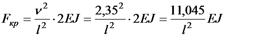 . Подставим значения функций в уравнение (4) и определим в каких пределах его можно изменять. Обе стойки рамы находятся в таких условиях, что их верхние концы не могут смещаться горизонтально, но упруго поворачиваются в узлах. Следовательно, критические силы стоек будут близки к критической силе прямолинейного стержня с заделкой обоих концов. Критический параметр в этом случае