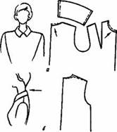 | Воротник отстает от шеи по горловине спинки при излишней ее глубине. Для устранения дефекта необходимо уменьшить глубину горловины спинки Воротник отстает от шеи сбоку при чрезмерной ширине горловины. Недостаток исправляют уменьшением ширины горловин |