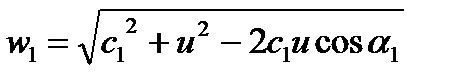 После оценки значения скорости с1=jс1t, расчета окружной скорости u=pdn, выбора угла a1, вычисляется относительная скорость w1на входе в рабочую решетку по формуле