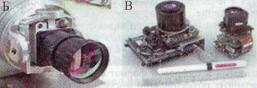 | Тепловизионные устройства с неохлаждаемыми приемниками: А - фиксированный координатор для применения в корреляционных системах коррекции; Б — следящий координатор; В - камера системы воздушной разведки |