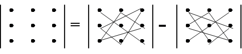т. е. каждое слагаемое в формуле (2) представляет собой произведение элементов определителя, взятых по одному и только одному из каждой строки и каждого столбца. Чтобы запомнить, какие произведения в формуле (2) брать со знаком плюс, а какие со знаком минус, полезно знать правило треугольников (правило Саррюса):
